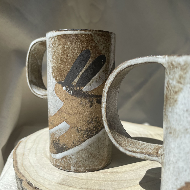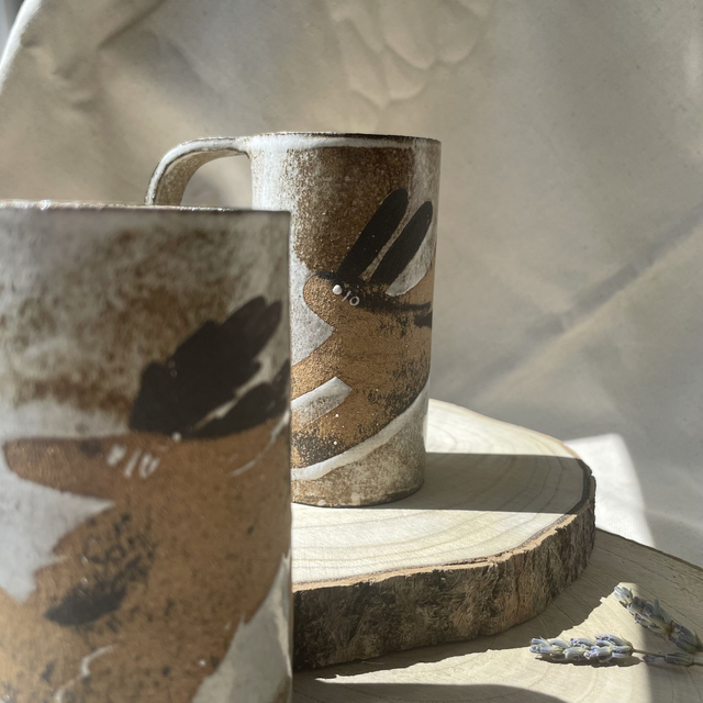 Tasse marbré pour le café ou le thé, en grés noir et roux